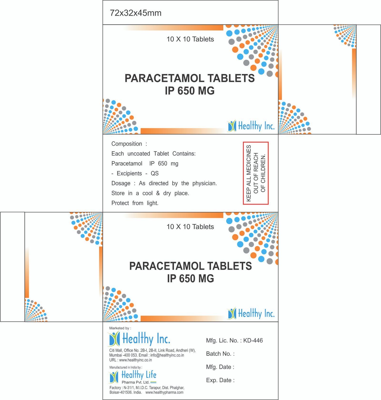 | Active Ingredient | Paracetamol (Acetaminophen) BP / USP / IP |